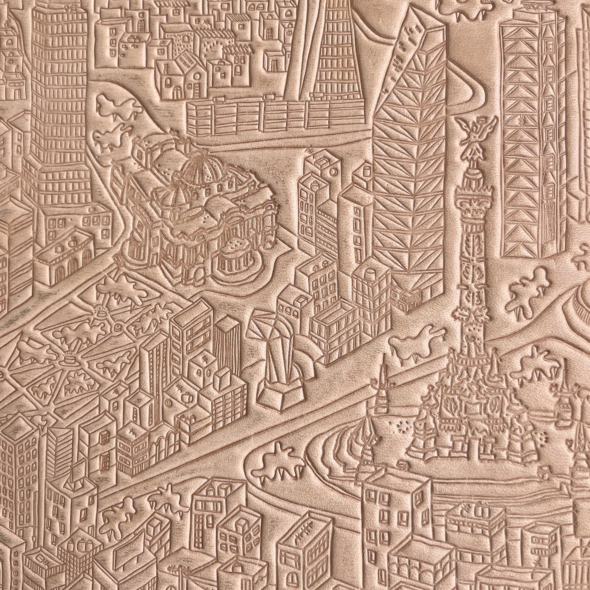 Libreta de piel para notas con interiores de papel bond, tamaño media carta.